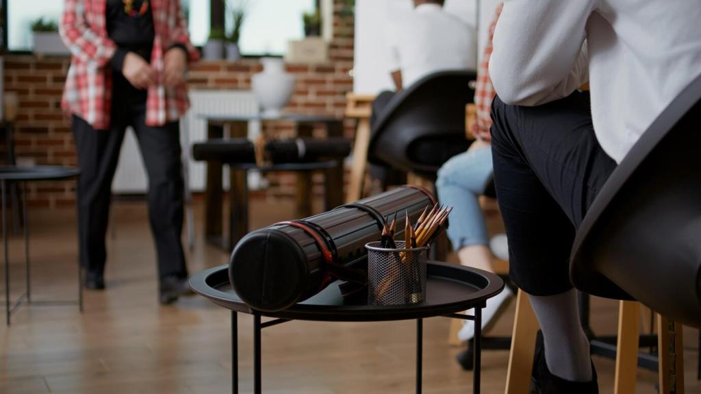 Nutze ausreichende Kontraste, großzügige Zeilenabstände und klare Hierarchien. Farbcodes müssen immer von Text oder Symbolen begleitet werden. So profitieren Lernende mit Sehbeeinträchtigung und alle, die bei Müdigkeit oder Sonnenlicht schneller visuelle Klarheit benötigen.